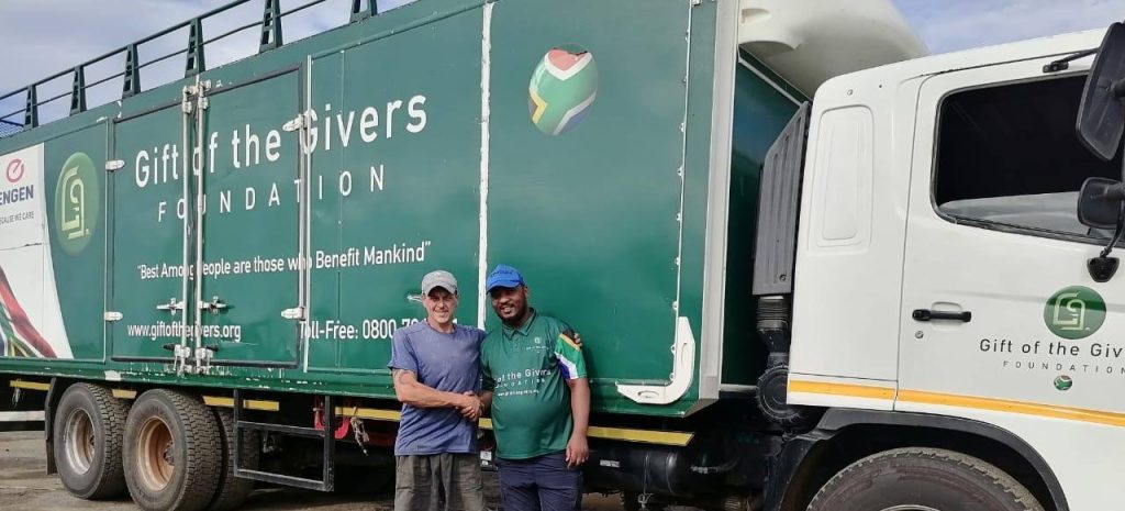 Earlier this month, the Gift of the Givers Foundation delivered a generous load of veterinary essentials to support both community animals and dedicated local welfare efforts on the South Coast. Their green-and-white truck, emblazoned with “Best Among People Are Those Who Benefit Mankind,” pulled into town with more than just supplies, it brought hope, healing, and heart.