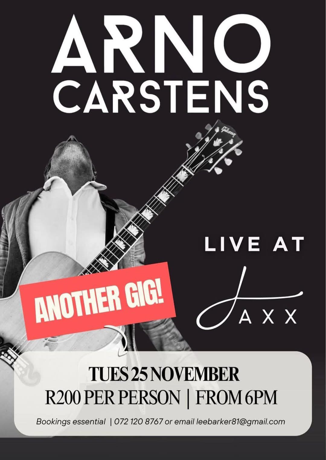 One night only! Experience the incredible Arno Carstens live at Jaxx for an unforgettable evening of music and good food.