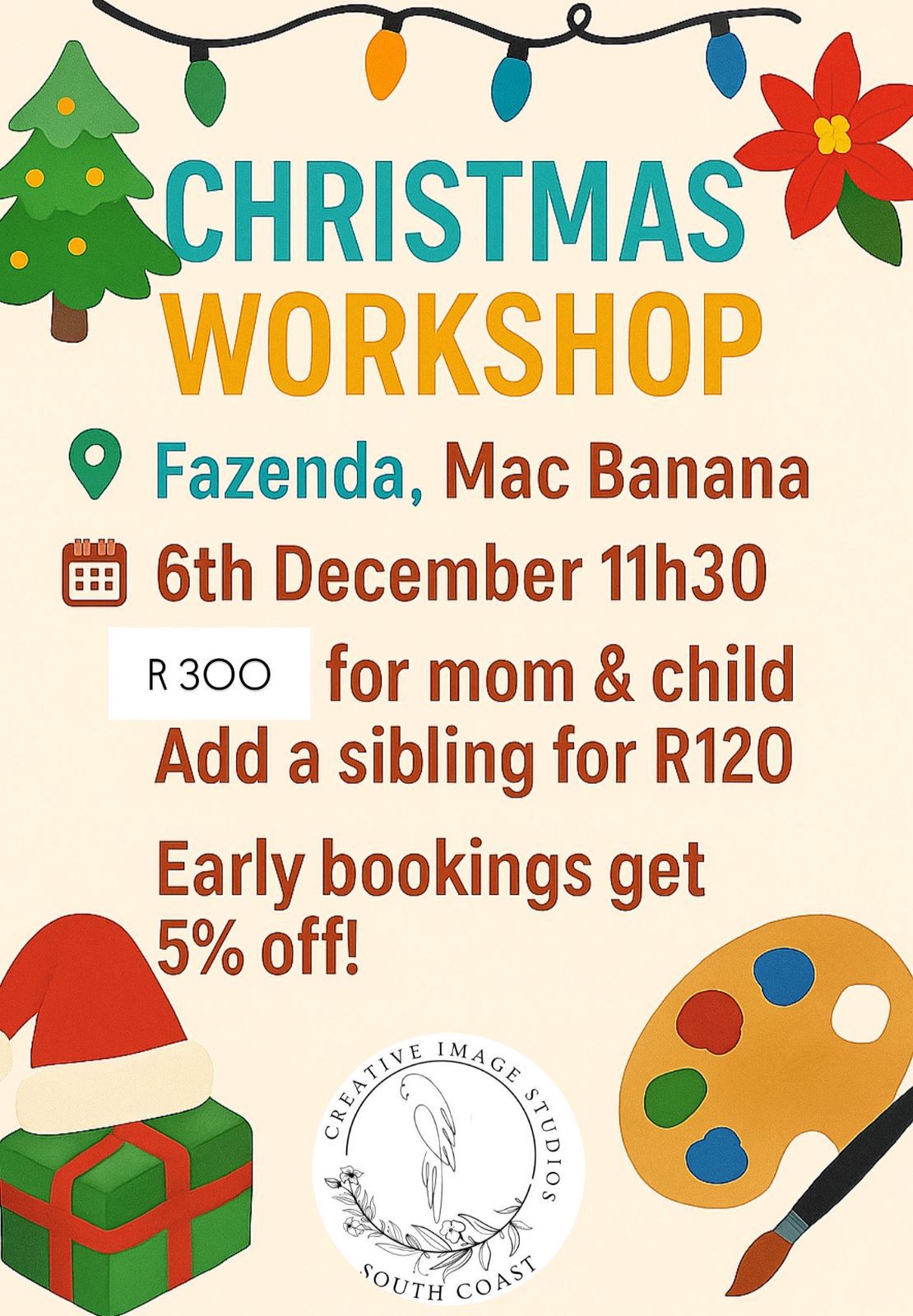 Get creative this festive season with a Christmas Workshop hosted by Creative Image Studios at Fazenda, Mac Banana. Perfect for moms and kids to craft, paint, and have fun together.