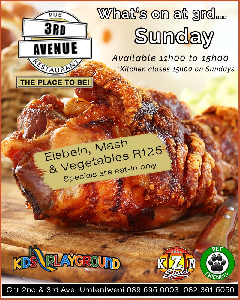 As one of the few places on the South Coast that has a kiddies play area in a safe environment, 3rd Avenue is the ideal place to take the family. Boasting a varied menu offering everything from breakfast and toasted sandwiches to scrumptious Eisbeins and Garlic Butter Prawns, 3rd Avenue caters for all tastes and appetites.