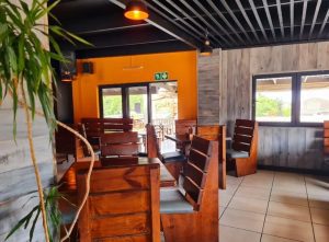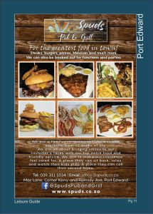 Family run restaurant with good atmosphere and delicious comfort food. This hidden gem in Port Edward offers a variety of menu items including burgers, baked potatoes, and pub fare. They also have a wood-fired pizza oven and a bar area.