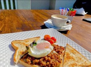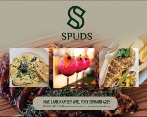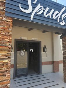 Spuds offers both beef and chicken burgers with various toppings like cheese, bacon, and fried egg