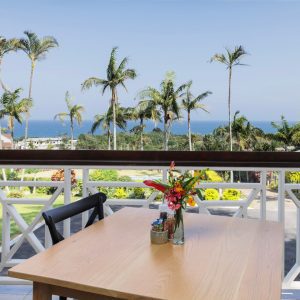 The stunning, open plan terrace seamlessly blends the bistro-style café with the magnificent South Coast panorama. You can grab a freshly brewed coffee and step out onto the expansive, redesigned seating area which offers sweeping, unobstructed views of the ocean and swimming pool. Whether enjoying a Mediterranean snack or utilizing the dedicated, plug-and-play business zone, every moment is enhanced by the stylish new ambiance and coastal outlook.
