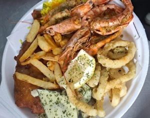 Catch-of-the-day seafood – crispy hake, tender calamari, calamari rings and line-fish portions fried or grilled to order.
